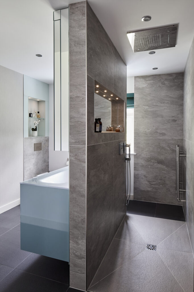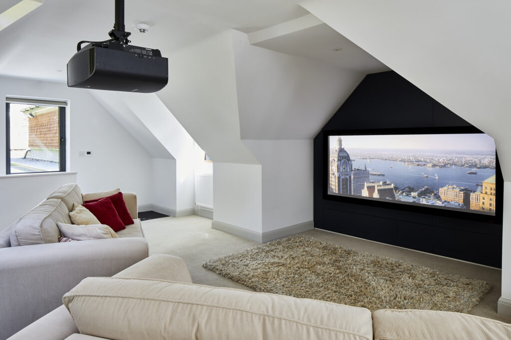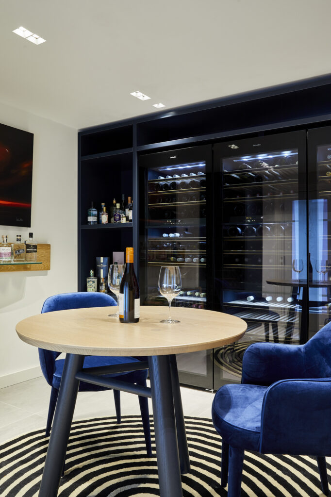 Joinery in bathroom, cinema room and bar area in Sevenoaks. In conjunction with Bridget Reading Interior Design