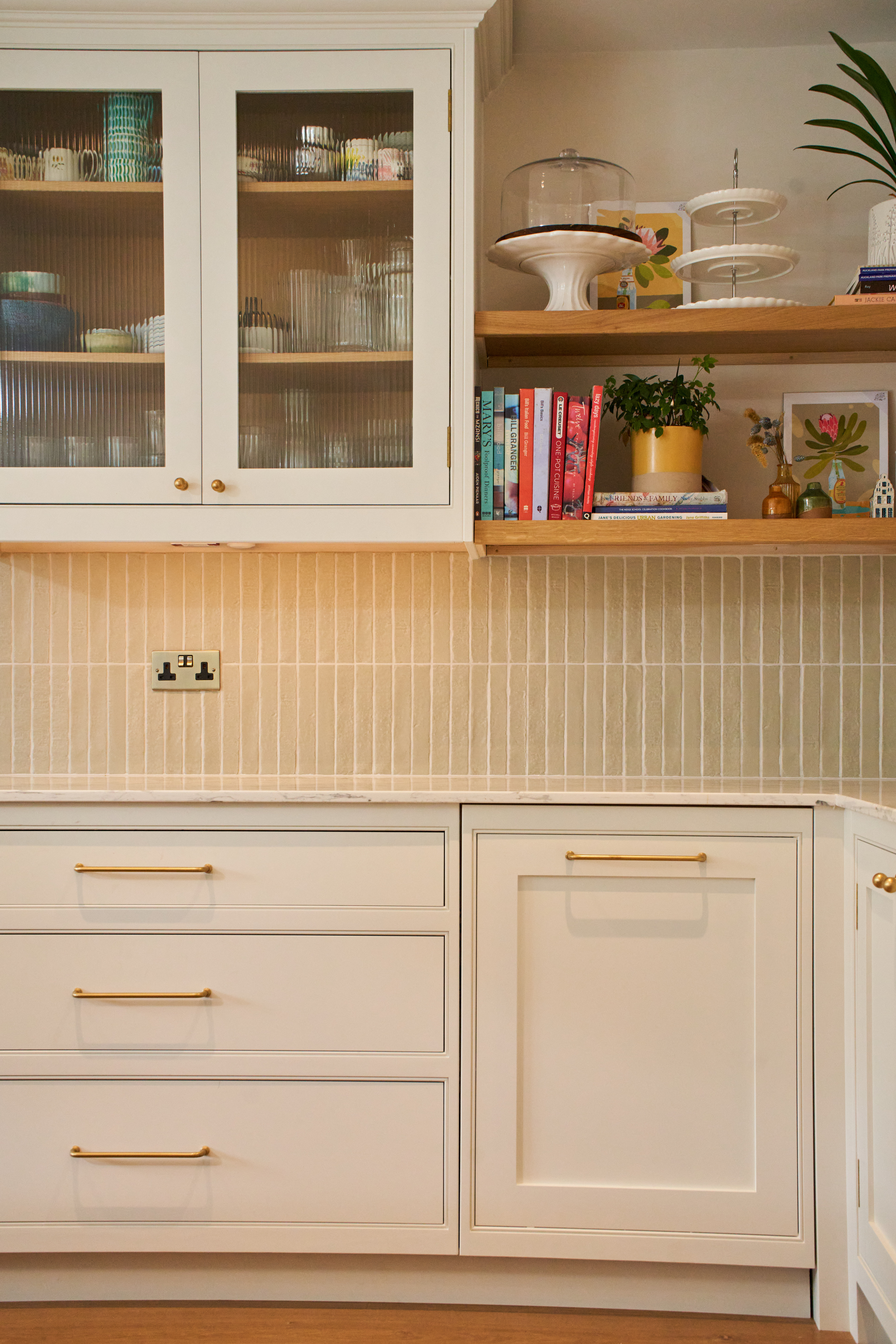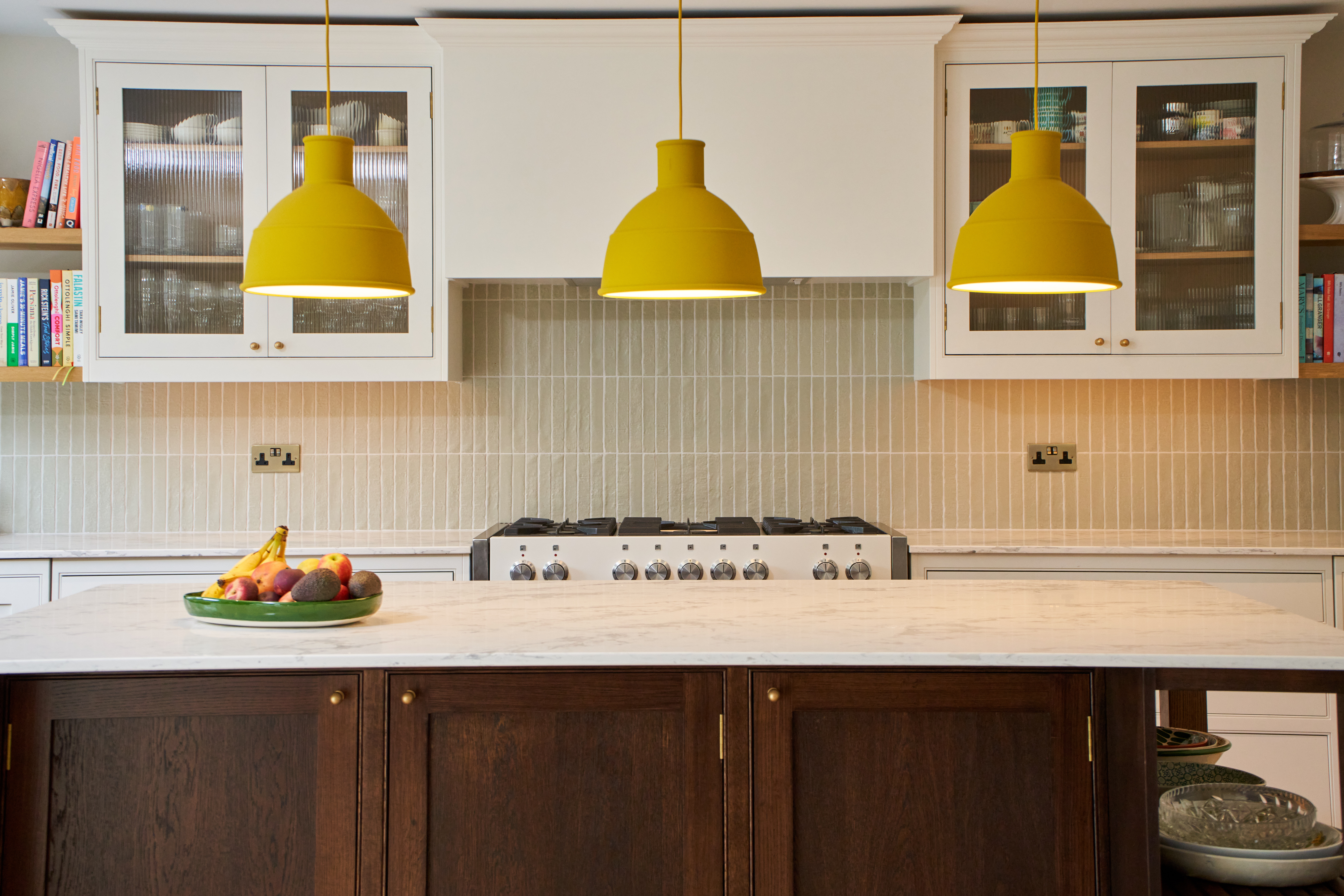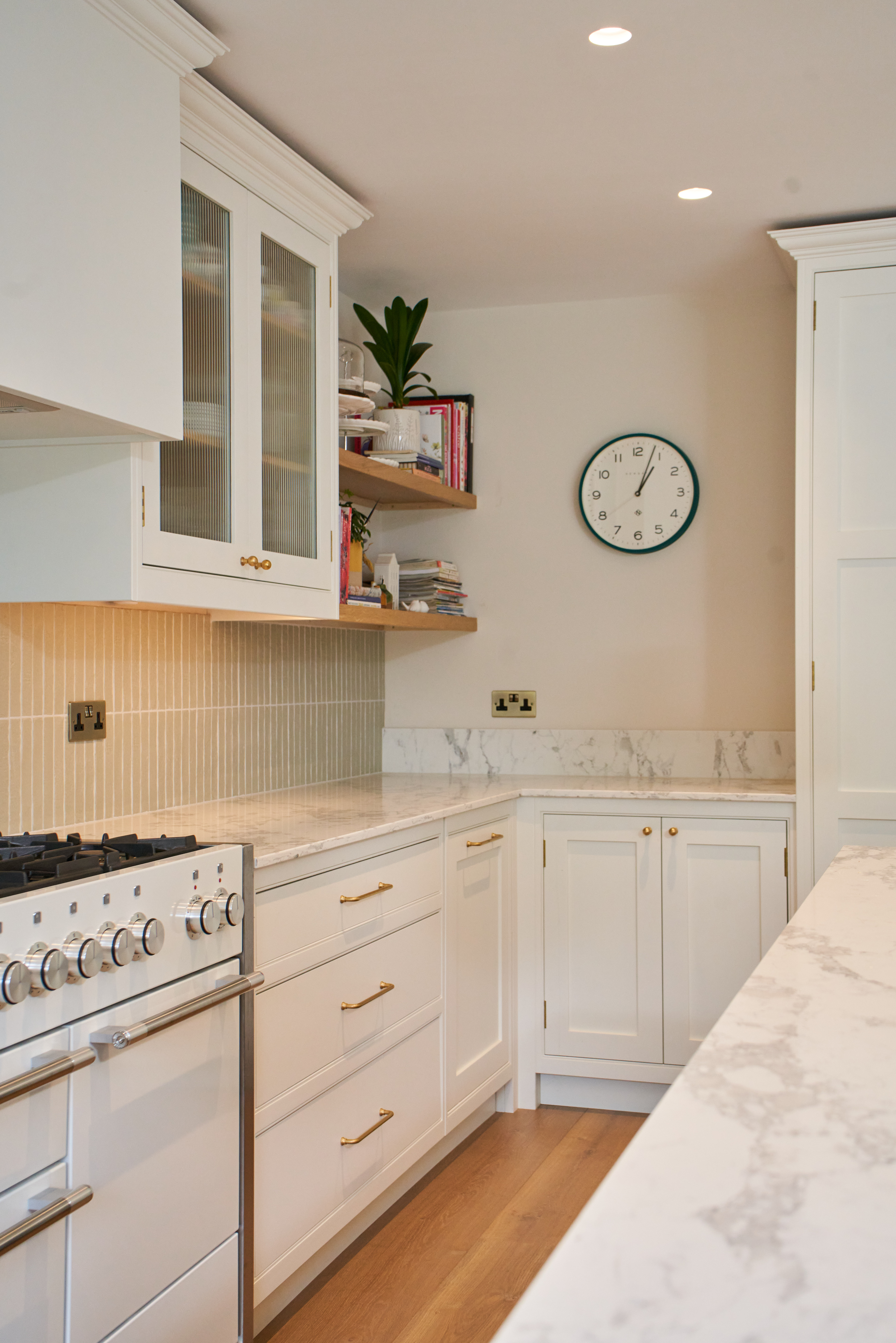 The mercury range and butler sink are ideal for this kitchen following traditional feel. The wall units with fluted glass are a great way to add more textures and play with depth.